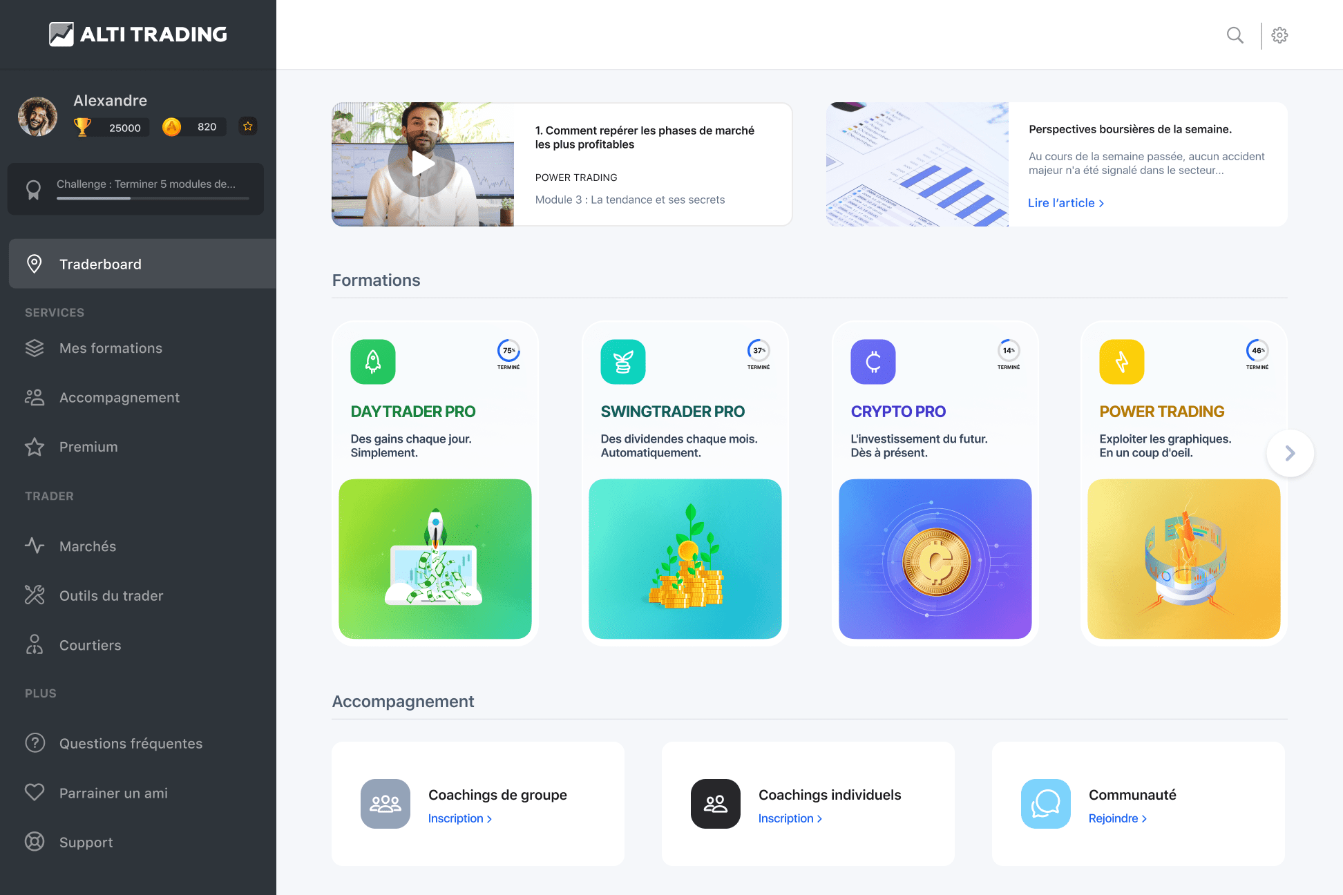 La solution d'apprentissage complète regroupant tous les outils nécessaires à la création de revenus sur les marchés financiers.